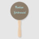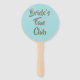 A fun fan design for the brides beach theme wedding party in popular nautical wedding colours of sandy brown and aqua blue in two shades with customisable text that says Bride's Fan Club and has the bridesmaids name on the back with the colours reversed.