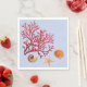 Blue paper napkins to match the plates for your beach theme party. Decorated with red fan coral and seashells. Matching paper plates available.