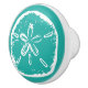 Beach theme sand dollar shell door and drawer pull knobs or handles. Nautical / Tropical design with turquoise blue / sea green background colour. Customisable background colour. Sanddollar icon. Make your own exotic style interior. Fun DIY accessories for home and office. Great for beautiful seaside / coastal kitchen, bathroom, bedroom cabinets, nursery, baby room etc.