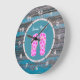 This unique beachy wall clock features pink flip flops adorned with darker pink hearts on a distressed teal blue and grey boardwalk background. A solid darker blue teal centre is the focal point for the surrounding clock numbers so this wall clock incorporates practicality as well as design! The phrase "Beach Please!" can be easily personalised to say whatever you'd like. If you need help with further customisation, please don't hesitate to contact the designer.