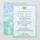 Colourful Blue Beach themed Wedding Invitation with white underwater seahorses, starfish,and corral. Add your wedding details for a one of a kind beach invite.
