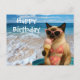 Celebrate a purr-fect birthday with this beach-themed postcard featuring a fabulous Siamese cat soaking up the sun in a glam outfit and shades. With ocean waves, and party vibes, this postcard is ideal for cat lovers who love the beach life. Send birthday wishes that are as cool, cute, and coastal as they come!