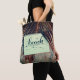 Beach themed, palm frond, sketch book with monogram Tote Bag. One side of the bag shows a palm frond on the sand with a sketch book with the word BEACH drawn on it. The other side has a green palm frond with the option of a monogram. This bag is hard wearing and can be used as an everyday bag, grocery store reusable bag, or whatever you choose.