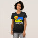 A beautiful woman lays on a lounge and luxuriates in the summer sunshine. Abstract suprematistic silhouette composition of yellow, blue, orange and black colours. Text Beach Time under the image. Customisable black or dark colour t-shirt for women. You can change the image and you can change or delete the template text. Do not forget to choose another style, colour, the gender of the apparel, there are 153 styles available.