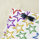 Row of coloured stars (red, purple, yellow, green, and blue) are multiplied at an angle to form rows of each colour repeated across the towel.