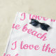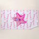 This beach towel is shown in a cute pink and white starfish print.