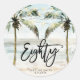 A tropical beach and palm trees design 80th birthday sticker with string lights and sandy beach. Easy to change or delete the text field available to suit your personal requirements. Please visit my shop to find matching items in this collection such as invitations, rsvp, thank you etc.