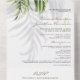 This elegant and modern tropical beach floral all-in-one tri-fold wedding invitation features beautiful watercolor palm tree fronds and white orchids with lovely shadows and trendy gold hand lettered script, with your wedding information on the front and reception, RSVP, and wedding details, including wedding website on the back. This is the perfect modern beach wedding invitation for the wedding on the beach or in the tropics, or for a tropical destination wedding location such as Hawaii, Florida, or the Caribbean. Back of the card features another palm tree shadow with your names and wedding date. Easy to customise with your own wedding information.