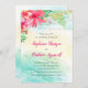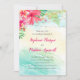 These wedding invitations feature a watercolor design with beach, tropical flowers, palm leaves and string lights. Personalise them with your own text. Matching products also available. Please visit our store or view the collection page to see the full range.