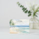 A watercolored sandy beach, ocean waves and palm trees as background. Personalize and add the reply by date.