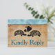 This fun rsvp allows your guests to choose a menu option. Featuring a background image of a sandy beach and two turtles.