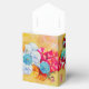 Waves on a sandy beach and sunbathers under colourful umbrellas, these ribbon closure tent style party favour boxes are fun for any summer occasion.