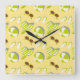 Beach vacay pattern with sunglasses and sun hat square wall clock