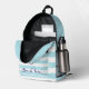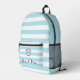 Head out to the beach, school, or city with relaxed coastal style. This personalised backpack features a front pocket striped in light blue and white, with “Beach Vibes” in navy script and an elegant monogram initial. The panel behind the pocket is also striped, while the top, back, and sides are plain light blue for a sleek, modern look that pairs well with anything. Whether you're headed to class, a weekend trip, or looking for a unique travel-themed gift, this backpack blends beach-day energy with personalised charm.
