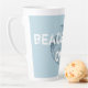 beach cottage theme design with customisable "beach vibes only" text in distressed white font, blue background and vintage blue tinted seashell illustration