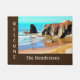 This artwork features a painterly photo of two beachcombers strolling with a dog at Face Rock State Scenic Viewpoint, personalised with your name, and the text Welcome. Make sure to type your name in the Personalised section.