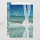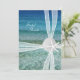Crystal clear sea water design bridal shower invitation. Custom wedding shower card for the beach bride has template text and is decorated with a sand dollar and starfish on the front. A border of starfish over ocean water decorates the back with dark green text for the brides name.