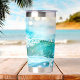 Thermal tumbler featuring a joyfully sparkling wave on the beach in happy turquoise colours.
