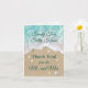The playful and fun saying, Sandy Toes Salty Kisses Thank You from the Mr. & Mrs. accents this Wedding Thank You Card on a background of turquoise water, beach sand, seashells, starfish and sand dollars. The inside of this card can easily be personalised with your own thank you message. If you need help customising this card, or need additional coordinating items, just contact us at prettyfancyinvites@gmail.com with your request. A photo version of this card is also available in the Turquoise Waves Wedding Collection.