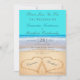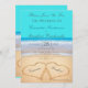 Beach Wedding 2 Hearts Sand Teal Blue Invitation
