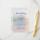 Beach wedding invitation insert card for hotel accommodations and welcome dinner information with a faded pastel peach, pink, and turquoise blue beach sunset or sunrise over a sandy ocean beach background photo and modern navy blue typography and a white thin border. Photo background prints with a trendy faded effect for a soft romantic filter. Click “Customise” for advanced exiting of the design such as changing text colour, font, and placement.