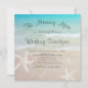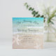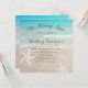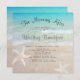 Beach wedding breakfast by the sea invitation with a tropical beach scene as the backdrop for custom text. Starfish decorate the beach sand, and turquoise blue water gives this stationery a lovely seaside appearance. Also use for a breakfast that takes place the morning of, or day before the wedding, by changing the curved text.