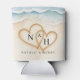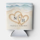 Keep your drinks cool in style with this beach wedding can cooler featuring romantic sand hearts and ocean waves. A perfect favour for tropical or coastal destination weddings, this personalised drink sleeve adds a heartfelt, beachy touch to your celebration. Customise with your names or initials for a memorable keepsake guests will love.