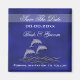Three dolphins leap out of the sea and are framed by text templates in white on cobalt / navy blue. PERSONALIZE IT - Change the wording to suit your special wedding, engagement or anniversary.