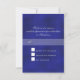 This RSVP card matches the wedding invitations ordered. The front matches the invitation exactly, which I really like. The back offers white boxes for guests to check (in reference to attendance) which allows the choice to stand out. Very, very elegant. The printing is very nice. All words are centered. The white font stands out against the blue background. Again, just beautiful!