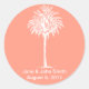 Beach Wedding Favour Stickers: White Palm on Coral Classic Round Sticker