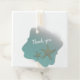 Beach wedding themed favour tag, with graphics of two starfish on an aqua water background. The back of the tag is done in a beach sand look. Personalise the text, on the front and back, to suit your wedding needs.