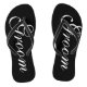 Elegant wedding flip flops for groom and bride. Custom strap colour for him and her / men and women. Custom background colour and personalizable with name initials. Modern black and white his and hers sandals with stylish script calligraphy typography. Cute party favour for beach theme wedding, marriage, bridal shower, engagement, anniversary, bbq, bachelorette, bachelor, girls weekend trip etc. Make your own classy flipflops set for bride and groom, bridesmaids, flower girl, mother of the bride, groomsmen, team bride, guests etc. Fun souvenir slippers for summer destination wedding in july and august. Cute attire item for just married honeymooners going on holiday.