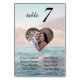 Add a personal touch to your beach wedding seating chart with these romantic table numbers. Featuring your photo in a heart cutout, your names, and wedding date, each card sits on a dreamy ocean and pastel sky background. A beautiful way to guide guests to their seats while tying in your coastal theme with elegance and love.