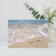 Beach hearts in the sand with bride and groom names for wedding RSVP.