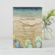 Beach wedding invitation, beautiful illustration of sand, sea, water, flip flops and sea shell, perfect backdrop for an intimate beach wedding