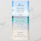 For the beach bound bride and groom, here's an easy to customise wedding menu template for your reception. Sparkling blue ocean in the background with sandy beach and blue and white clouds. Lovely photo; lovely for your beach parties!