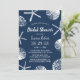 Navy Blue Starfish & Seashells Beach Bridal Shower Invitations.