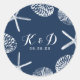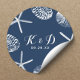 Beach Wedding Navy Blue Seashells Wedding Favour Classic Round Sticker