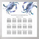 Create the perfect seating arrangement for your beach wedding with this stunning table seating chart featuring unique watercolor crab in shades of blue by Victoria Grigaliunas. This elegant design captures the essence of a seaside celebration, with a nautical, ocean-inspired theme that's ideal for a coastal wedding. Whether you choose to order a printed sign or a convenient digital printable file, this seating chart will beautifully guide your guests to their seats. Perfect for adding a personalised touch to your wedding seating. To explore more designs, visit www.zazzle.com/dotellabelle.