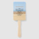 Beach Wedding Program Hand Fan, easy to personalise the names of the couple and the wedding date on the front of the fan and the ceremony schedule on the back. The photograph on each side of the fan features a beautiful sandy beach beneath a lovely blue sky.