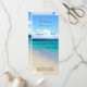 2 sided Wedding template for Beach Wedding. First side shows Wedding couple's name, location and wedding date against a dramatic blue ocean with sandy beach. White puffy clouds in the background with beautiful shade of blue sky. Back side has basic ceremonial information plus information on wedding party. Can be customised any way you like with the fields, font selection and font colour. Perfect for the bride and groom beach destination wedding or other special event.