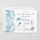 Set the scene for the night before your big day with these illustrated rehearsal dinner invitations, featuring hand-painted watercolor artwork of an octopus, sea coral, seahorses, and whimsical sea creatures. Designed in blue and white, these ocean-inspired invites are perfect for a beach or nautical-themed celebration.