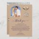 Share your gratitude and your memories with our Beach Wedding Sand Hearts thank you card. Featuring two plumped hearts drawn in the sand, gently framed by a larger heart made of seashells, this design perfectly captures the warmth and romance of your beachside celebration.