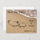 Beach theme Save the Date cards with hearts drawn in the sand! Easy to use template - just add the names of the Bride & Groom, along with the wedding date in the space provided.