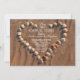 beach rehearsal dinner invitation with seashells in the beach sand.