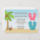 Invite the guests for a beach wedding shower in style with this modern and fun beach wedding shower invitation. Features a pair of bride and a groom flipflops.