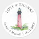 These beach wedding stickers feature a watercolor Jupiter, Florida lighthouse. Use the template fields to add your custom thank you text. A charming choice for destination, coastal, nautical, seaside wedding favours and gifts.