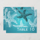 Beach Wedding "Table Number" design with romantic Starfish Blue design and custom table number text. Impress your family and friends with this stylish and modern design. Fully customisable! Easy to use and easy to personalise. Order Today!