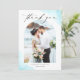 Express your gratitude with this Photo Beach Wedding Thank You Card, featuring a serene blue watercolor splash and elegant calligraphy framed in a modern arch design. Perfect for summer weddings, it showcases your favourite photo to capture the essence of your special beach day. Customising it is simple, but I’d be happy to help you create a card as unique as your wedding memories!