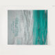 Coastal turquoise white wedding beach themed tapestry decor. Nautical summer ocean waves tropical reception photo booth backdrop. Beautiful, chic, trendy, modern, cool, elegant custom banner. Mr and Mrs, custom names and date. Image copyright Marg Seregelyi Photography.